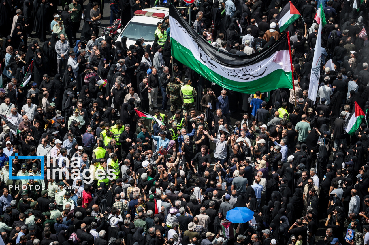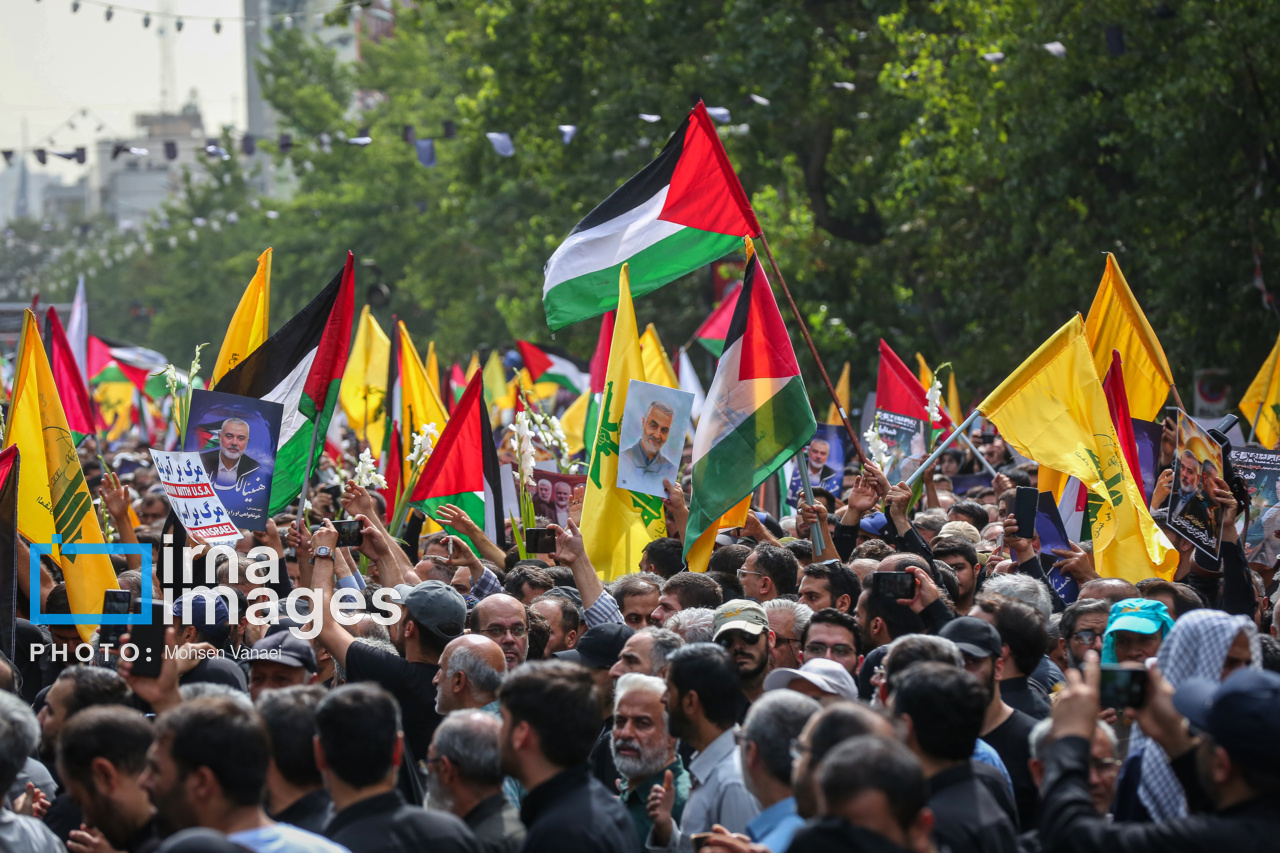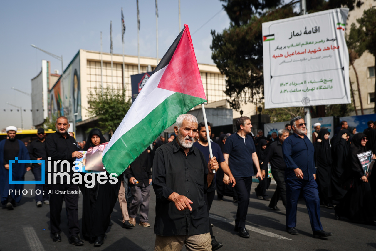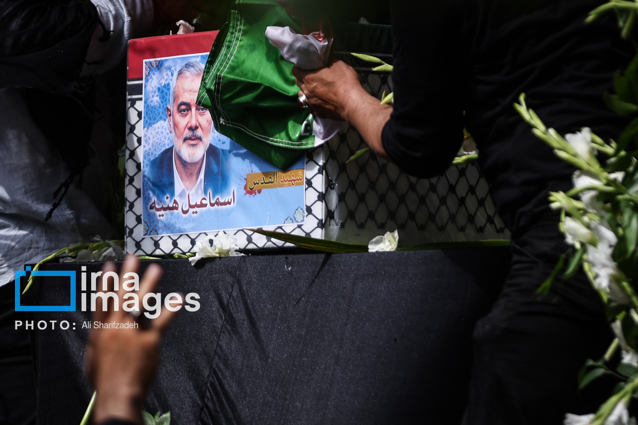 تشییع پیکر شهدای قدس، پیکر شهید «اسماعیل هنیه» رئیس دفتر سیاسی حماس و «وسیم ابوشعبان» همراه او، صبح پنج شنبه (۱۱ مرداد ۱۴۰۳) پس از اقامه رهبر معظم انقلاب اسلامی، در دانشگاه تهران توسط مردم تشییع شد.