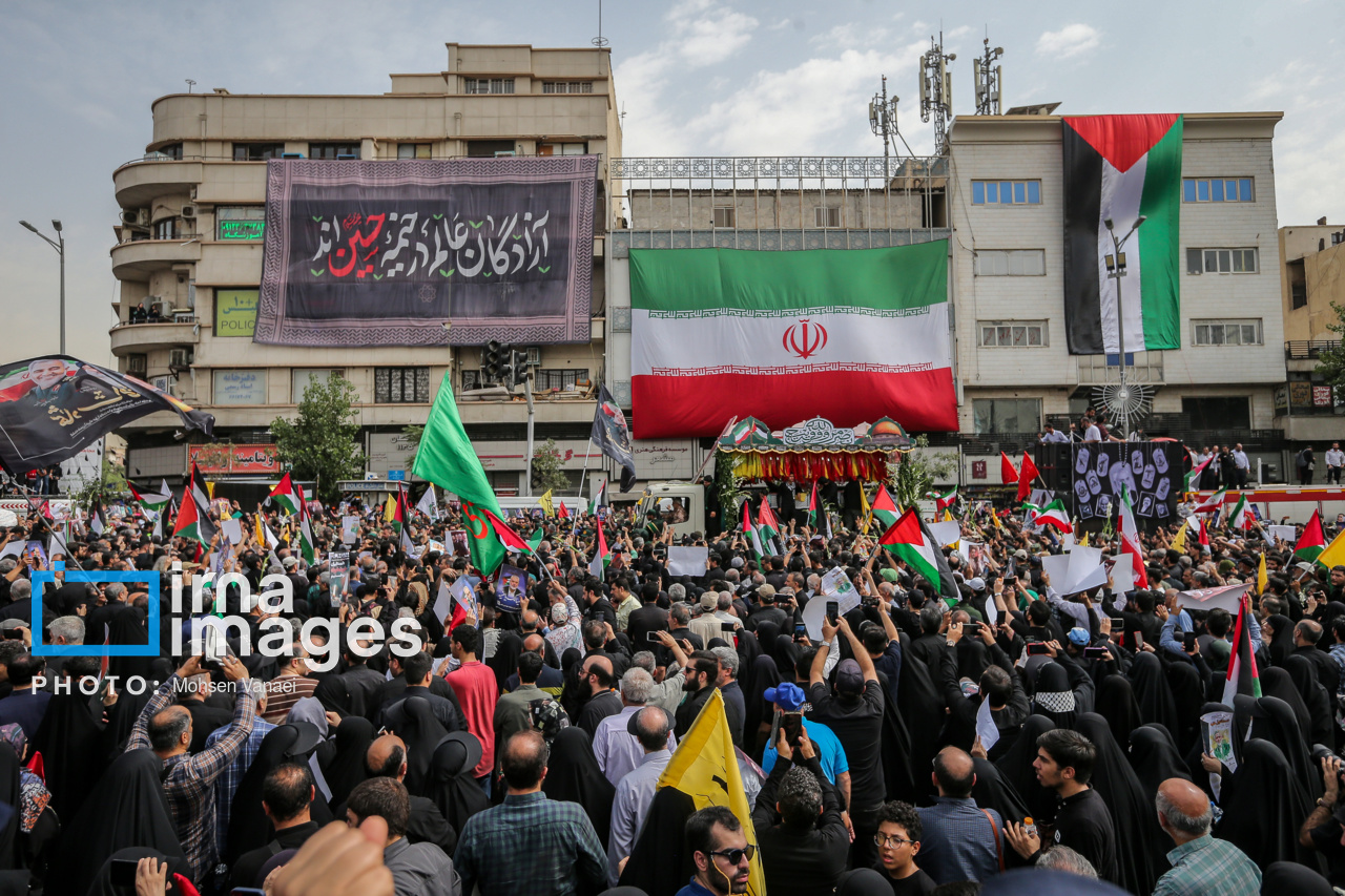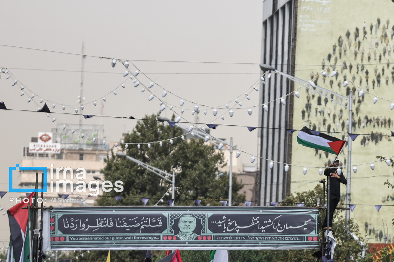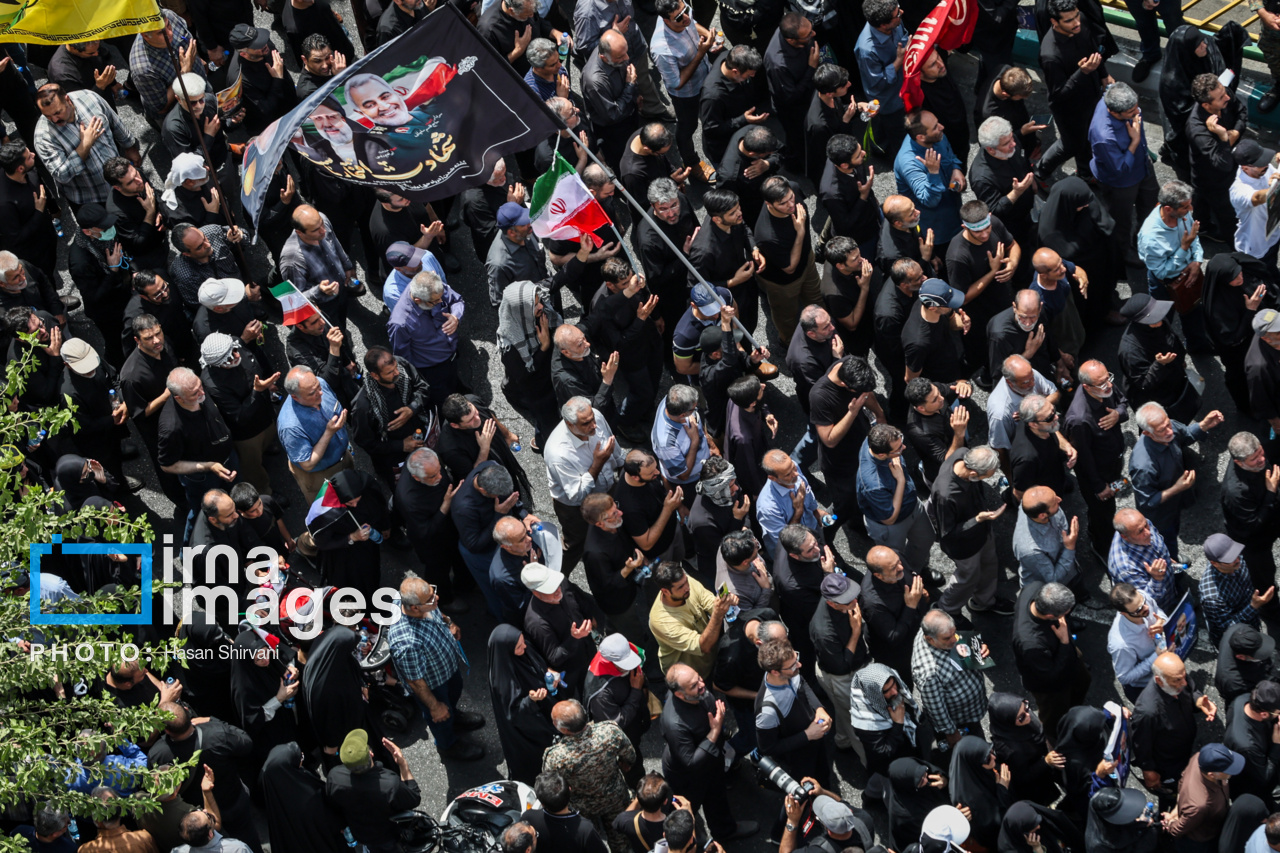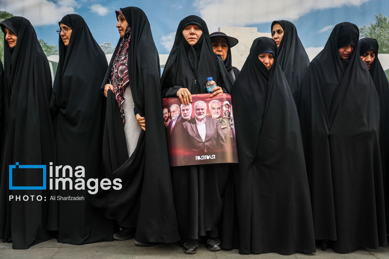 تشییع پیکر شهدای قدس، پیکر شهید «اسماعیل هنیه» رئیس دفتر سیاسی حماس و «وسیم ابوشعبان» همراه او، صبح پنج شنبه (۱۱ مرداد ۱۴۰۳) پس از اقامه رهبر معظم انقلاب اسلامی، در دانشگاه تهران توسط مردم تشییع شد.