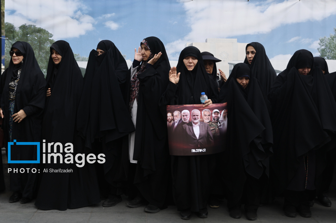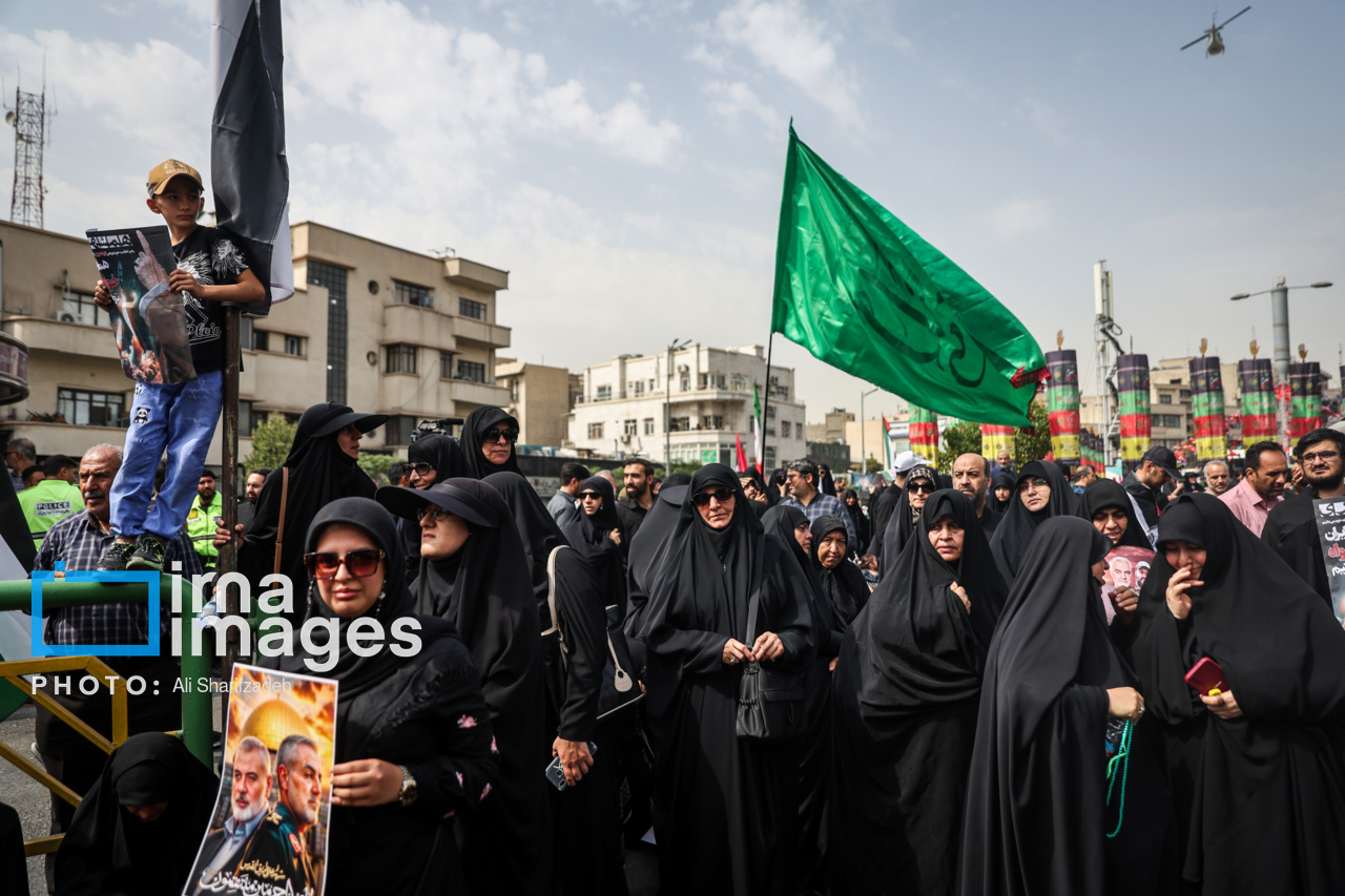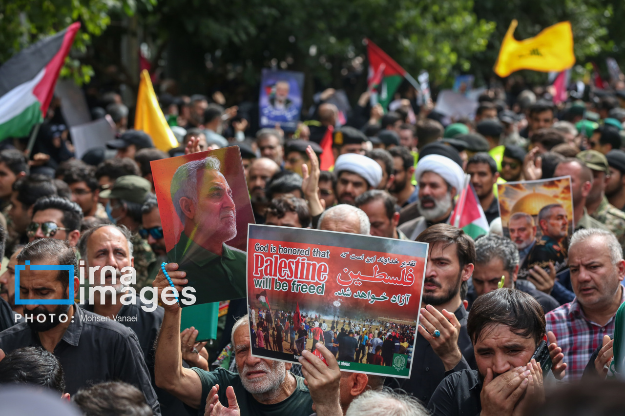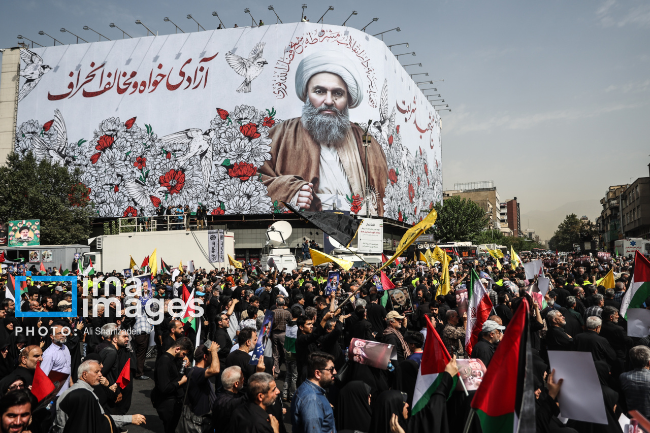 تشییع پیکر شهدای قدس، پیکر شهید «اسماعیل هنیه» رئیس دفتر سیاسی حماس و «وسیم ابوشعبان» همراه او، صبح پنج شنبه (۱۱ مرداد ۱۴۰۳) پس از اقامه رهبر معظم انقلاب اسلامی، در دانشگاه تهران توسط مردم تشییع شد.