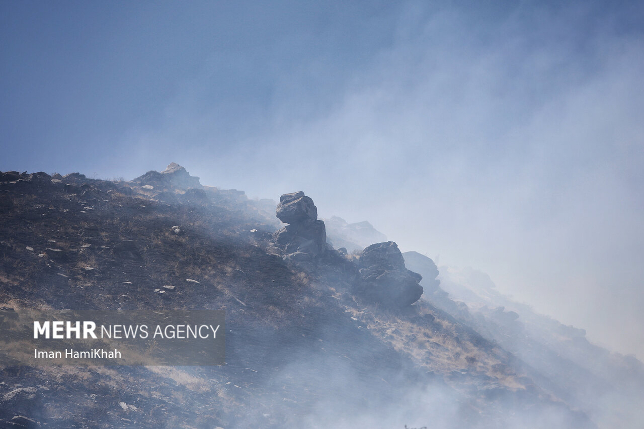 آتش به جانِ دامنه‌های الوند کوه