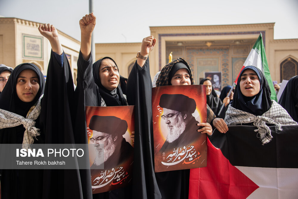 - تجمع بزرگ دانش آموزان شیرازی در حمایت از محور مقاومت، چهارشنبه ۱۱ مهر ۱۴۰۳ دانش آموزان شیرازی در حمایت از محور مقاومت و گرامیداشت شهید سید حسن نصرالله در صحن حضرت جواد (ع) در شاهچراغ تجمع کردند و رژیم صهیونیستی را محکوم کردند .