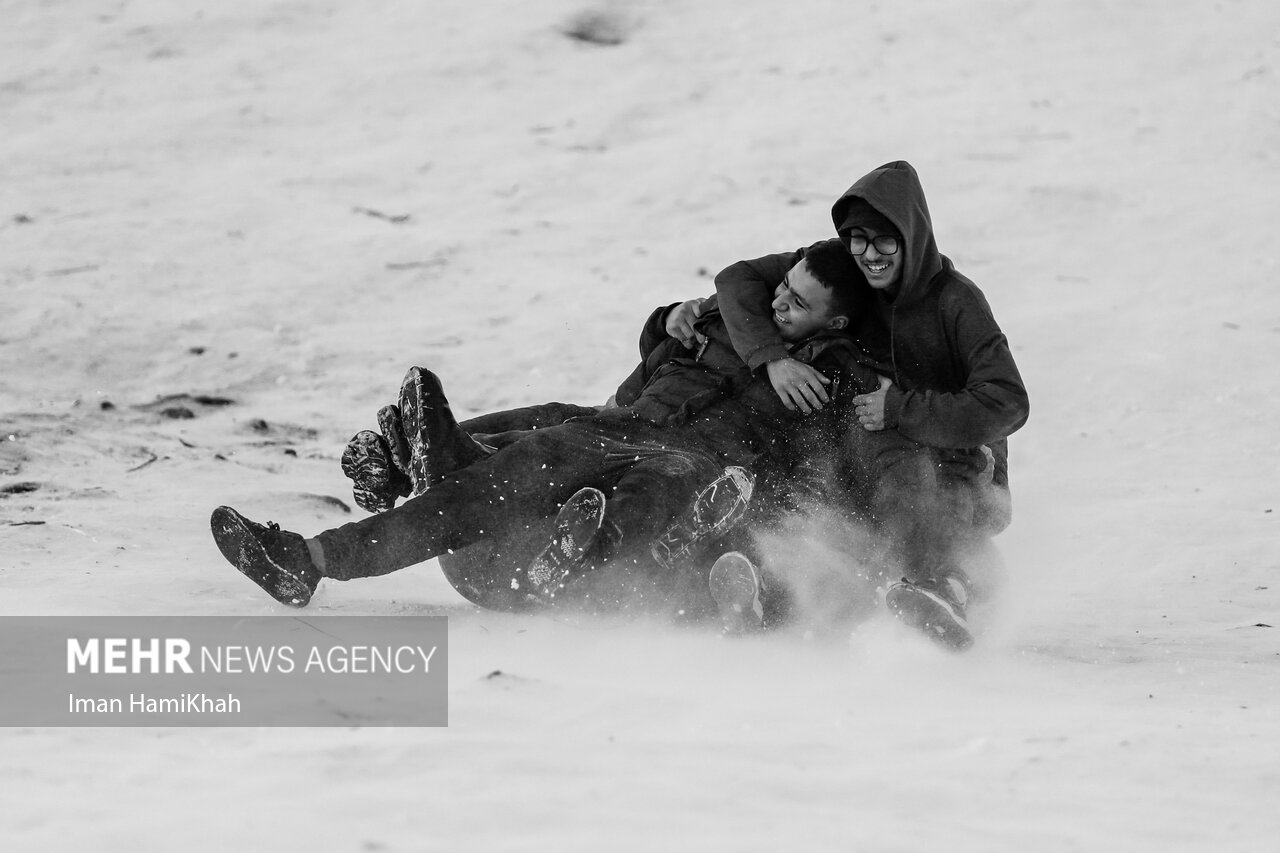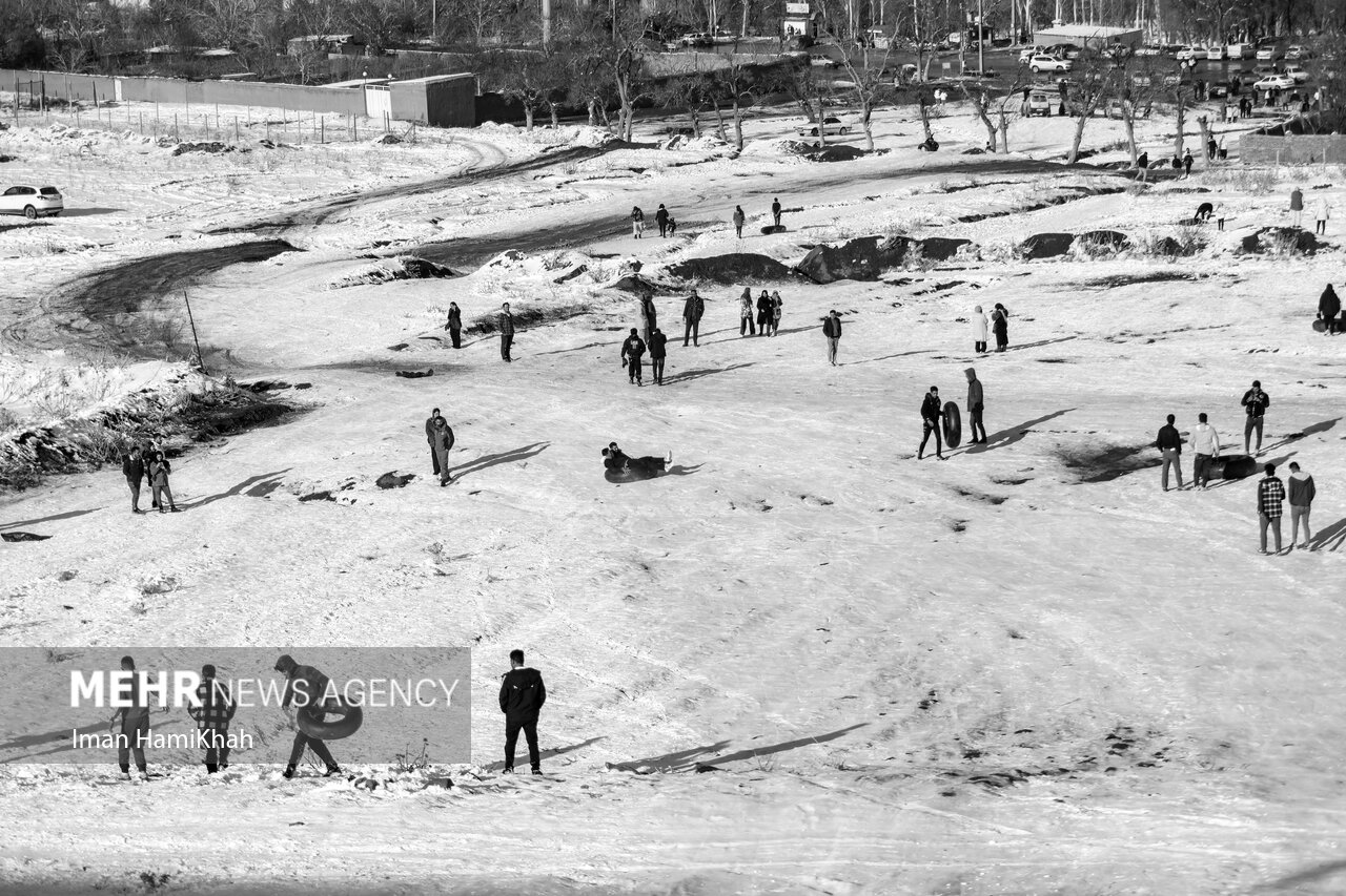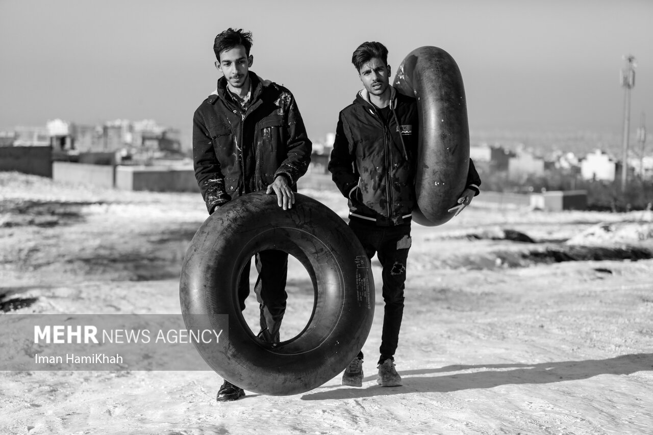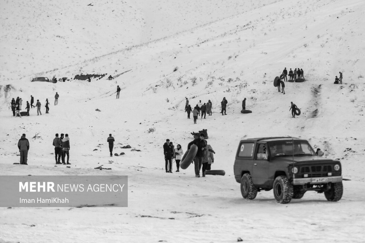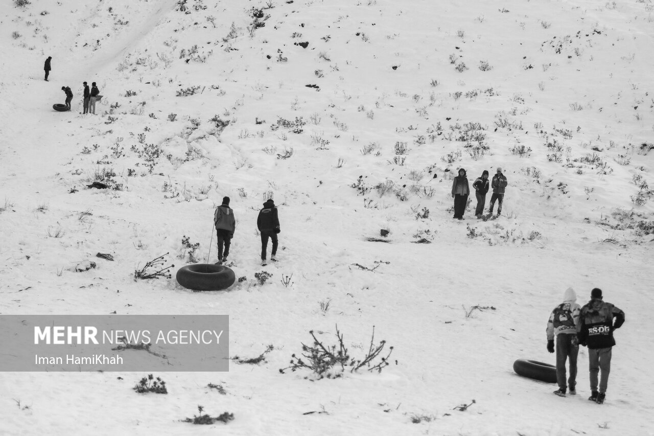 تیوب سواری در ارتفاعات همدان، بارش برف روزهای گذشته در همدان شرایط مناسبی برای تفریحات زمستانی مردم به وجود آورده است.
