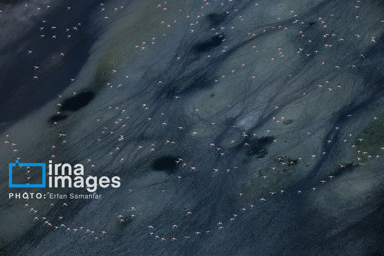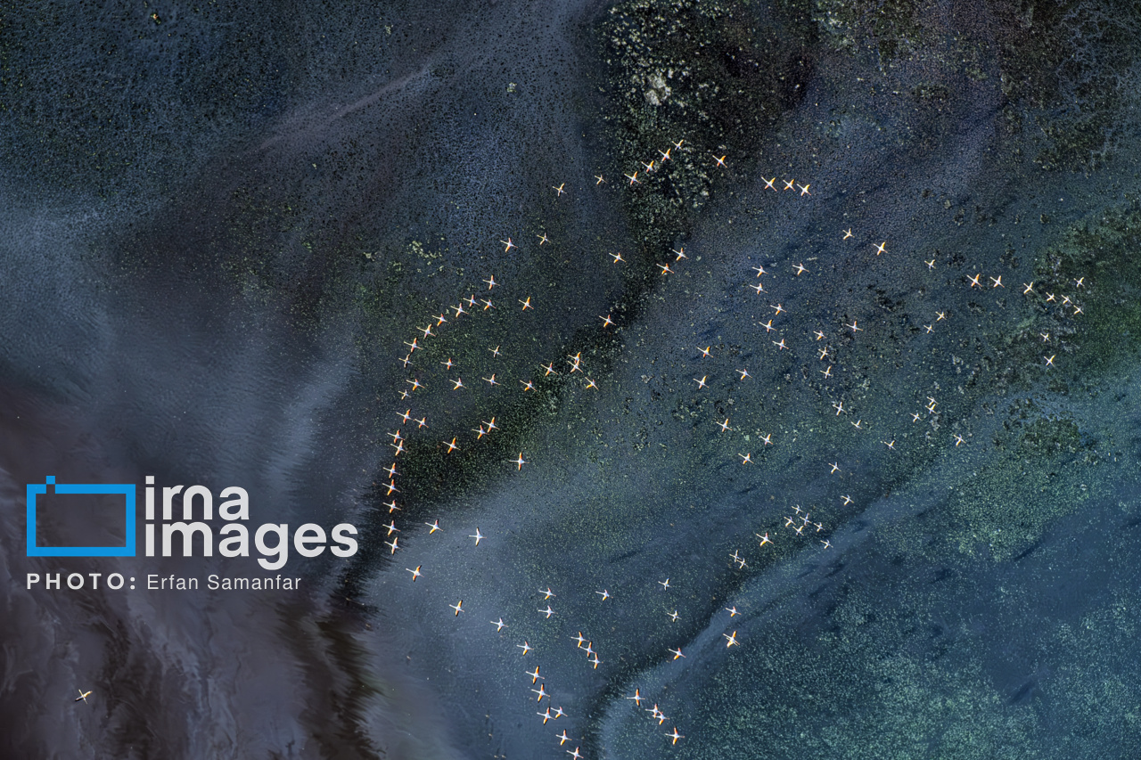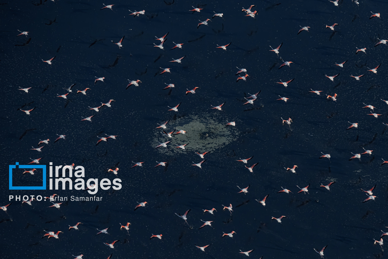 این دریاچه در جنوب کشور یکی از زیستگاه های اصلی فلامینگو و گونه های مختلف پرندگان است که سالانه تعداد زیادی پرنده در این دریاچه زیست می کنند. این تصاویر به وسیله پرواز با پاراگلایدر و بعضی از عکسها از ارتفاع بالای سه هزار متر گرفته شده است.