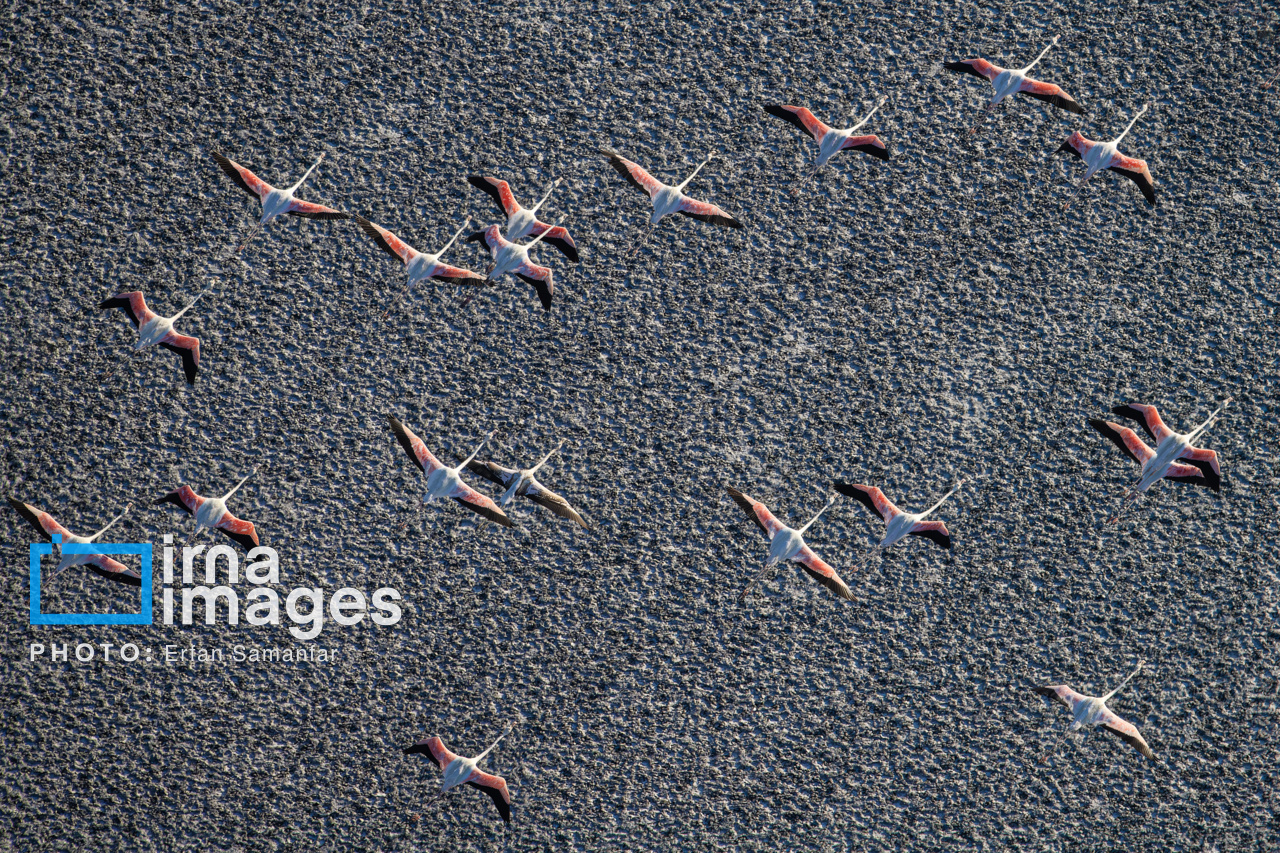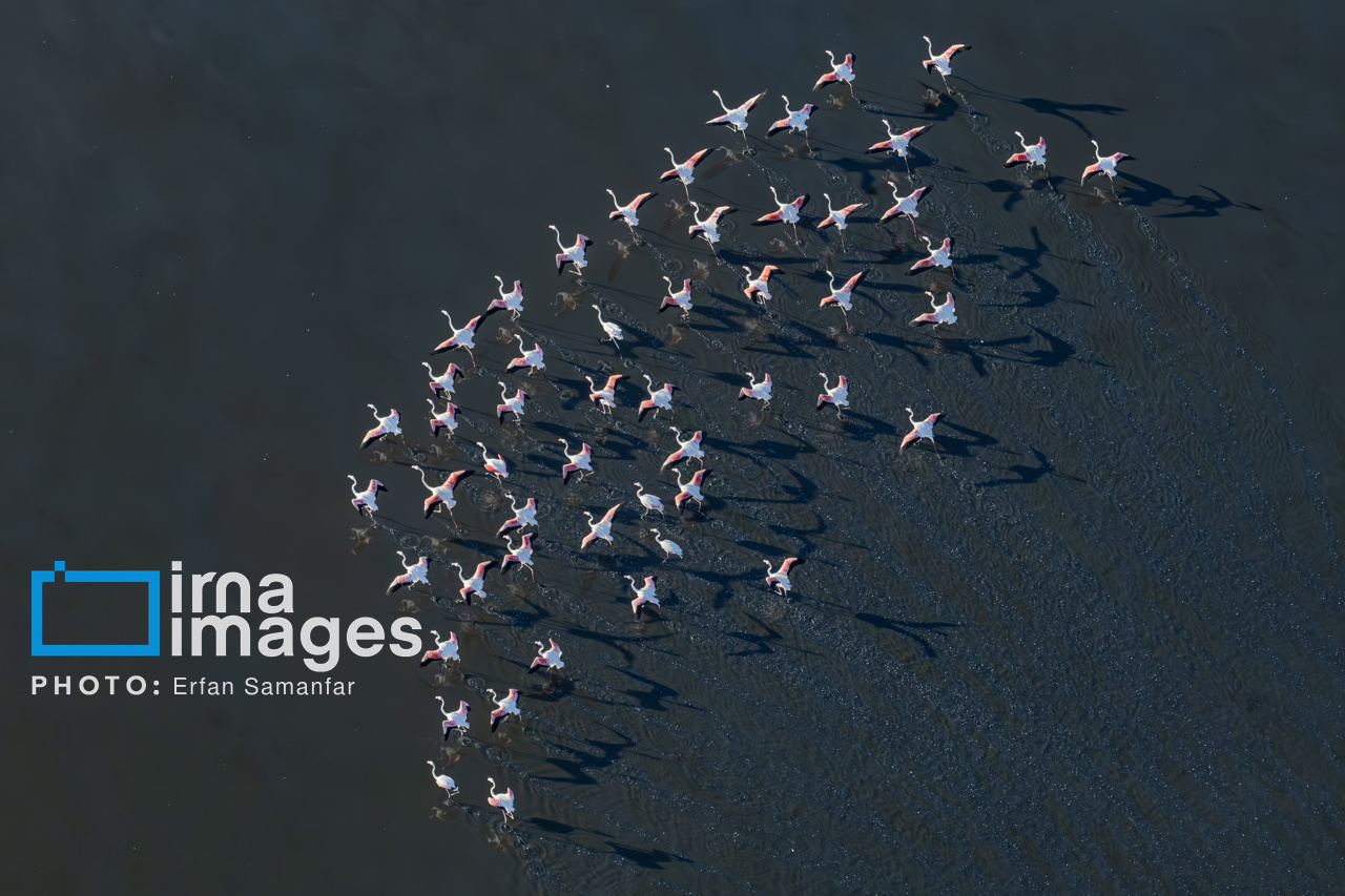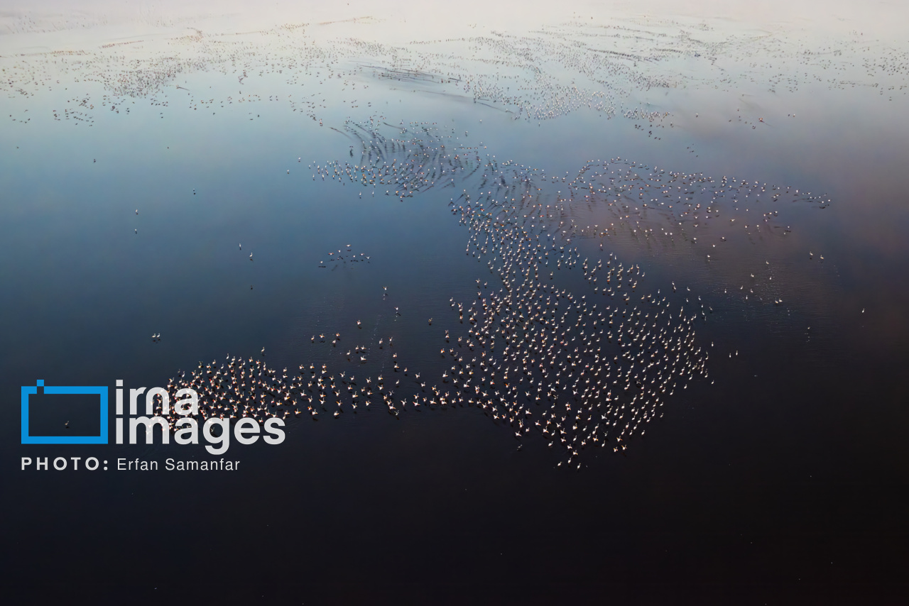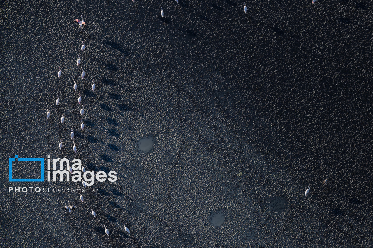 این دریاچه در جنوب کشور یکی از زیستگاه های اصلی فلامینگو و گونه های مختلف پرندگان است که سالانه تعداد زیادی پرنده در این دریاچه زیست می کنند. این تصاویر به وسیله پرواز با پاراگلایدر و بعضی از عکسها از ارتفاع بالای سه هزار متر گرفته شده است.