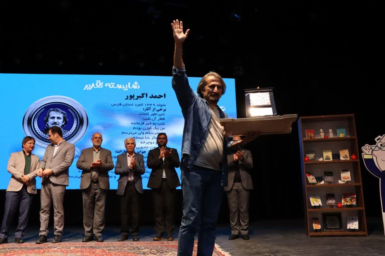 تندیس جشنواره و لوح تقدیر برای احمد اکبرپور برای رمان امپراتور کلمات.